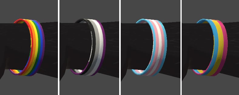Bracelet for your vrchat character, comes with a few pride skins but also the template file to make your own.